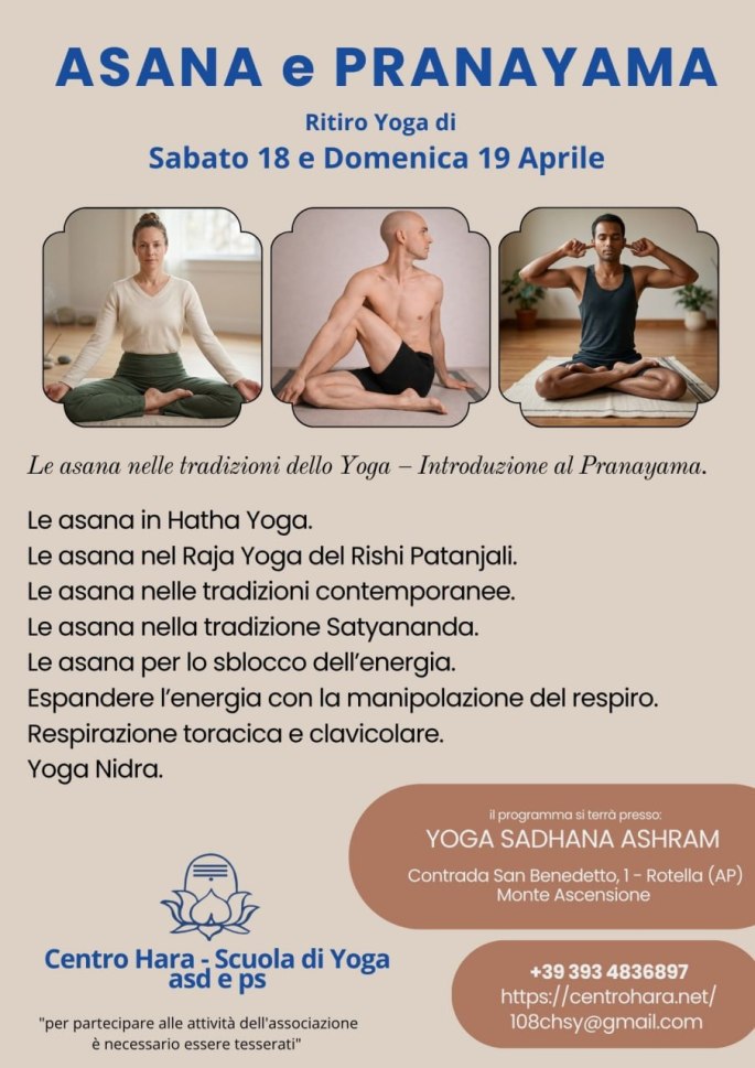 Il Centro Hara, Scuola di Yoga organizza una serie di incontri con cadenza mensile in forma di un weekend al mese per praticare, sperimentare e conoscere lo Yoga presso Yoga Sadhana Ashram.