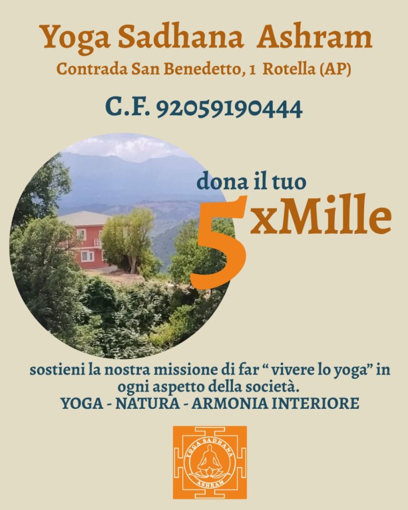 SE RITIENI CHE QUELLO QUELLO CHE STIAMO FACENDO SIA IMPORTANTE , SOSTENICI DONANDO IL TUO 5X1000 A TE NON COSTA NULLA PER NOI PUรโ ESSERE UNโOPPORTUNITรโ PER CONCRETIZZARE LA MISSIONE E RENDERE LO YOGA, QUELLO INTEGRALE, ACCESSIBILE A SEMPRE PIร PERSONE.